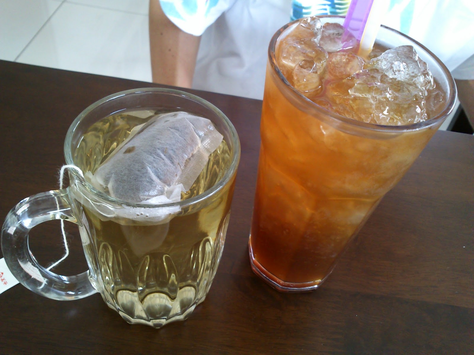 一杯香片茶,一杯是金吉柠檬。
